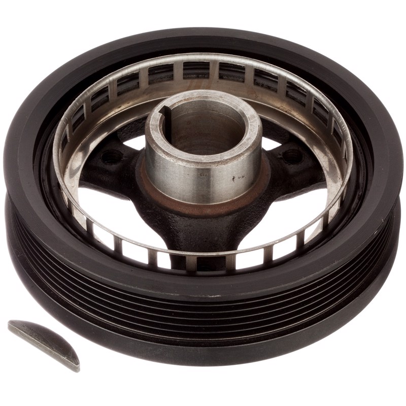 The purpose of an harmonic balancer is to absorb crankshaft vibrations. Harmonic balancers are typically constructed in three pieces. The first piece is often called a hub. It bolts to directly to the crankshaft. The hub is surrounded by rubber or fluid which dampens crankshaft vibrations. The outside layer is metal which has grooves on it for the belt. Over time the rubber and/or fluid layer deteriorate causing the outer pulley to shift forward. This causes belt miss alignment and can ultimately result in crankshaft failure. When the harmonic balancer is broken, it must be replaced. ATP Harmonic Balancers fit and function just like the original part restoring the engine to normal operation.