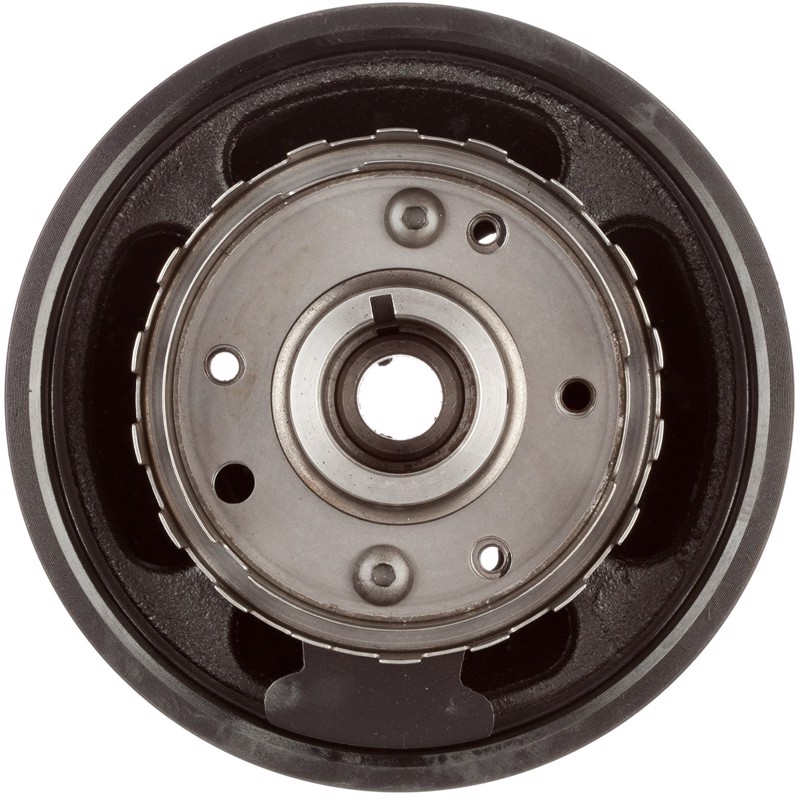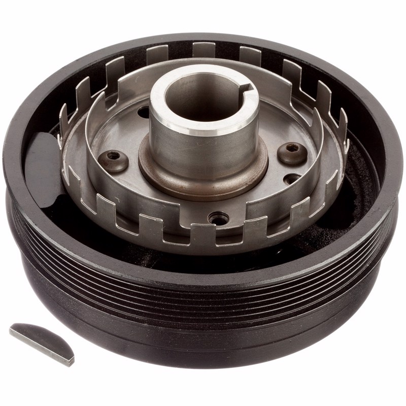 The purpose of an harmonic balancer is to absorb crankshaft vibrations. Harmonic balancers are typically constructed in three pieces. The first piece is often called a hub. It bolts to directly to the crankshaft. The hub is surrounded by rubber or fluid which dampens crankshaft vibrations. The outside layer is metal which has grooves on it for the belt. Over time the rubber and/or fluid layer deteriorate causing the outer pulley to shift forward. This causes belt miss alignment and can ultimately result in crankshaft failure. When the harmonic balancer is broken, it must be replaced. ATP Harmonic Balancers fit and function just like the original part restoring the engine to normal operation.