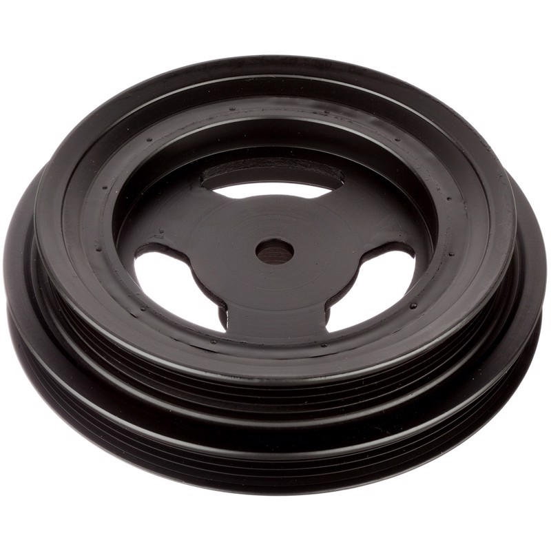 The purpose of an harmonic balancer is to absorb crankshaft vibrations. Harmonic balancers are typically constructed in three pieces. The first piece is often called a hub. It bolts to directly to the crankshaft. The hub is surrounded by rubber or fluid which dampens crankshaft vibrations. The outside layer is metal which has grooves on it for the belt. Over time the rubber and/or fluid layer deteriorate causing the outer pulley to shift forward. This causes belt miss alignment and can ultimately result in crankshaft failure. When the harmonic balancer is broken, it must be replaced. ATP Harmonic Balancers fit and function just like the original part restoring the engine to normal operation.