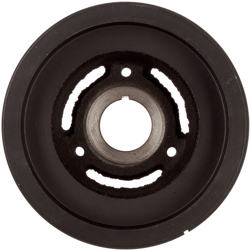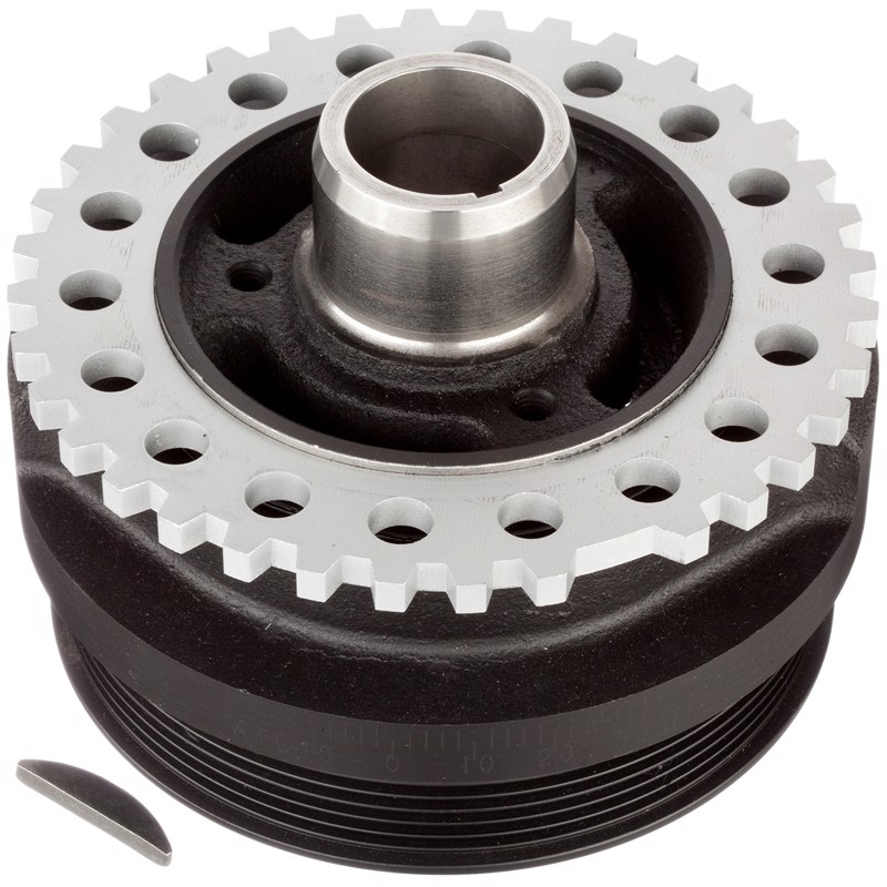 The purpose of an harmonic balancer is to absorb crankshaft vibrations. Harmonic balancers are typically constructed in three pieces. The first piece is often called a hub. It bolts to directly to the crankshaft. The hub is surrounded by rubber or fluid which dampens crankshaft vibrations. The outside layer is metal which has grooves on it for the belt. Over time the rubber and/or fluid layer deteriorate causing the outer pulley to shift forward. This causes belt miss alignment and can ultimately result in crankshaft failure. When the harmonic balancer is broken, it must be replaced. ATP Harmonic Balancers fit and function just like the original part restoring the engine to normal operation.
