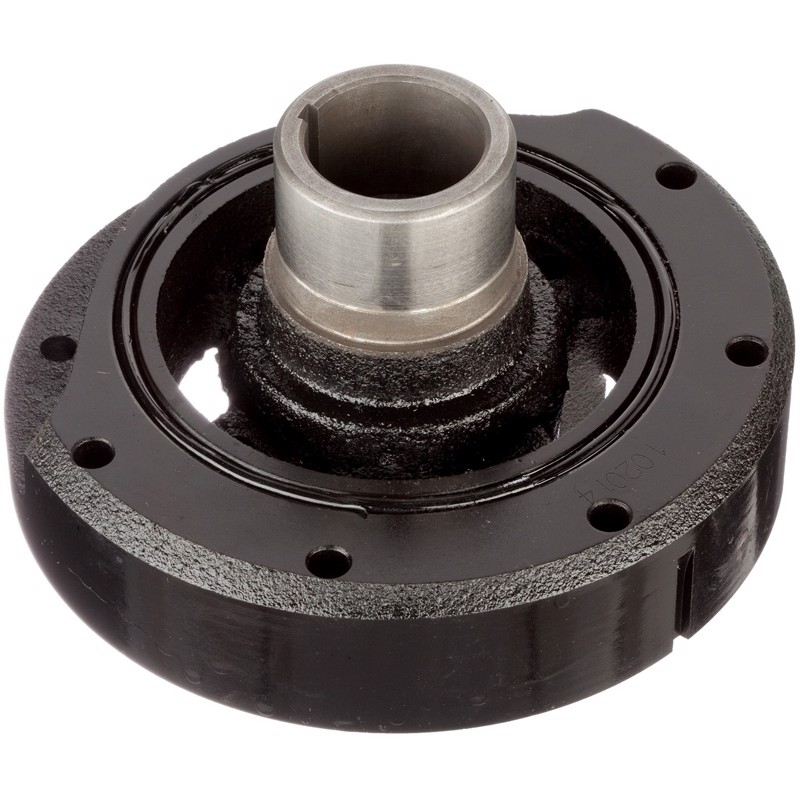 The purpose of an harmonic balancer is to absorb crankshaft vibrations. Harmonic balancers are typically constructed in three pieces. The first piece is often called a hub. It bolts to directly to the crankshaft. The hub is surrounded by rubber or fluid which dampens crankshaft vibrations. The outside layer is metal which has grooves on it for the belt. Over time the rubber and/or fluid layer deteriorate causing the outer pulley to shift forward. This causes belt miss alignment and can ultimately result in crankshaft failure. When the harmonic balancer is broken, it must be replaced. ATP Harmonic Balancers fit and function just like the original part restoring the engine to normal operation.