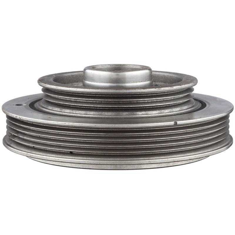 The purpose of an harmonic balancer is to absorb crankshaft vibrations. Harmonic balancers are typically constructed in three pieces. The first piece is often called a hub. It bolts to directly to the crankshaft. The hub is surrounded by rubber or fluid which dampens crankshaft vibrations. The outside layer is metal which has grooves on it for the belt. Over time the rubber and/or fluid layer deteriorate causing the outer pulley to shift forward. This causes belt miss alignment and can ultimately result in crankshaft failure. When the harmonic balancer is broken, it must be replaced. ATP Harmonic Balancers fit and function just like the original part restoring the engine to normal operation.