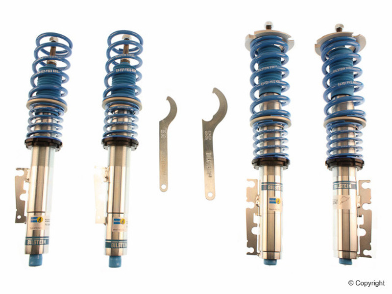 Bilstein B16 (PSS9) suspension kits feature ride height adjustability with 9-stage manually adjustable dampers in an OE quality, direct fit package. The 9-stage damping system adjusts both rebound and compression with each click to provide the best handling performance in any condition. These kits offer monotube performance dampers with matched springs that are tuned for each specific application. The zinc coated and threaded body design will give you the flexibility to find the perfect ride height setting for your intended use while providing unsurpassed protection against the harshest road elements. B16 (PSS9) suspension kits are made in Germany and feature technology tested on the famed Nurburgring.