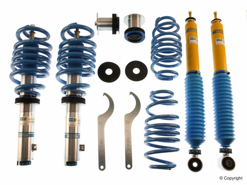 Bilstein B16 (PSS10) suspension kits feature ride height adjustability with 10-stage manually adjustable dampers in an OE quality, direct fit package. The 10-stage damping system adjusts both rebound and compression with each click to provide the best handling performance in any condition. These kits offer monotube performance dampers with matched springs that are tuned for each specific application. The zinc coated and threaded body design will give you the flexibility to find the perfect ride height setting for your intended use while providing unsurpassed protection against the harshest road elements. B16 (PSS10) suspension kits are made in Germany and feature technology tested on the famed Nurburgring.