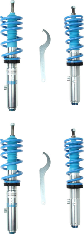Bilstein B16 (PSS10) suspension kits feature ride height adjustability with 10-stage manually adjustable dampers in an OE quality, direct fit package. The 10-stage damping system adjusts both rebound and compression with each click to provide the best handling performance in any condition. These kits offer monotube performance dampers with matched springs that are tuned for each specific application. The zinc coated and threaded body design will give you the flexibility to find the perfect ride height setting for your intended use while providing unsurpassed protection against the harshest road elements. B16 (PSS10) suspension kits are made in Germany and feature technology tested on the famed Nurburgring.