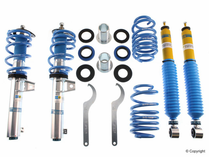 Bilstein B16 (PSS10) suspension kits feature ride height adjustability with 10-stage manually adjustable dampers in an OE quality, direct fit package. The 10-stage damping system adjusts both rebound and compression with each click to provide the best handling performance in any condition. These kits offer monotube performance dampers with matched springs that are tuned for each specific application. The zinc coated and threaded body design will give you the flexibility to find the perfect ride height setting for your intended use while providing unsurpassed protection against the harshest road elements. B16 (PSS10) suspension kits are made in Germany and feature technology tested on the famed Nurburgring.