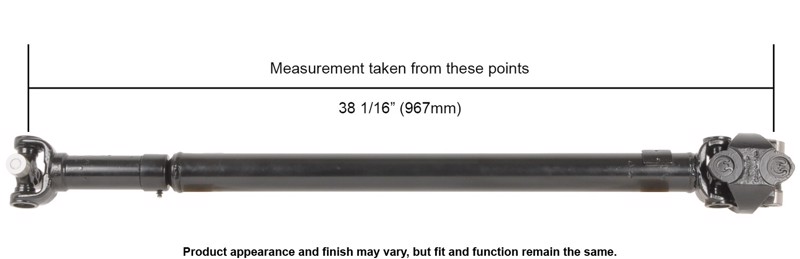 Measurement is taken from the centerline of the furthest U-Joint at one end to the centerline of the furthest U-Joint on the opposite end of the collapsed Prop Shaft.