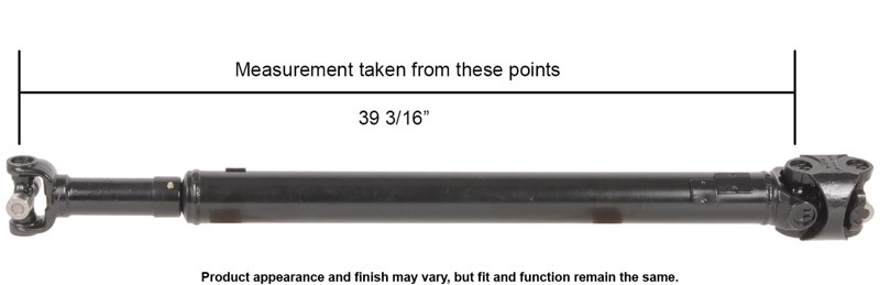 Measurement is taken from the centerline of the furthest U-Joint at one end to the centerline of the furthest U-Joint on the opposite end of the collapsed Prop Shaft.